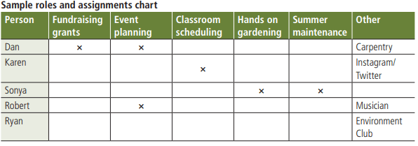 Make a list of all of the people already involved at the school that are interested in supporting the school garden club: parents, teachers, administrators, grounds keepers, maintenance people. Then create another list for members of the community that can bring a wider range of skills to the group. Some talents will be obvious (landscapers, horticulturalists, gardeners) but there are plenty of others that can be just as valuable, like people with writing skills, photographers, organizers, activists, bee keepers, carpenters, etc.